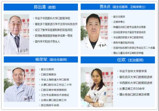 成都圣贝牙科除了外籍专家,更有来自华西口腔陈治清教授、第四军医大正畸博士贾永庆、正畸名医杨荣军副主任医师以及任欢医生等各路名医专家坐镇!