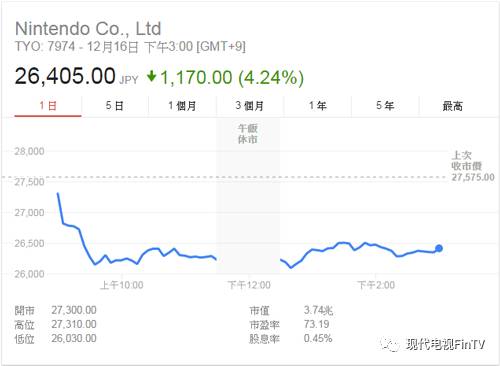 其在日本国内的国家同样遭遇下跌,周五收盘跌幅为4.24%,这使得任天堂股票连续四天收低,周亏损幅度也有所扩大。