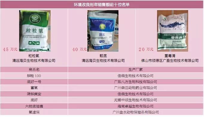 本次调查共走访大鳌镇上经营水产动保产品有代表性的经销商近40家,搜集销售额排名前列的畅销产品200多个,涉及厂家70多家,所有调查产品年销售总额超过1500万元。