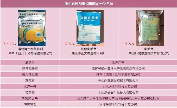 养殖品种的改变,导致动保产品的结构也出现了调整。原本大鳌养殖户使用最多的是环境改良剂、微生态制剂、营养保健类这三大类产品,这三类产品主要针对的是白对虾养殖塘,几乎都是非药品。而以前在对虾上很少使用的消毒剂、抗寄生虫类、抗微生物类等产品,随着台湾泥鳅养殖的增多,也开始逐渐多了起来。