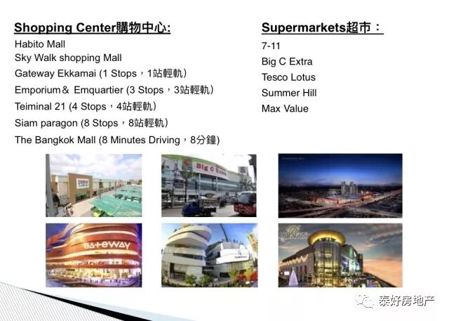 距离曼谷著名的购物中心均是4,5站路范围内。