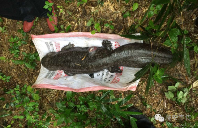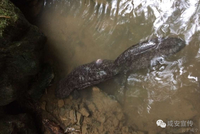 近日,咸安区渔政站接群众爆料在咸宁市咸安区双溪桥镇李荣村发现一条特大怪鱼,体长一米有余,长有四肢,引众多村民围观。