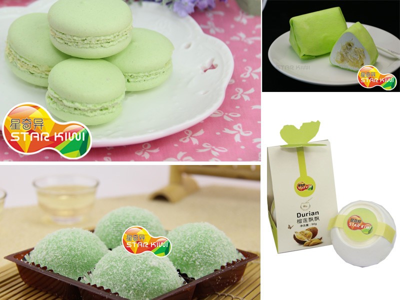 星奇异,可以说是榴莲甜品的代表,其对榴莲的挑选挑剔不再话下,每一件榴莲甜品都是选用顶好的泰国榴莲。榴莲马卡龙(高大上啊!)、榴莲糯米糍(软软的,很贴心!)、榴莲班戟、榴莲飘飘(素什么?等你来发现!)