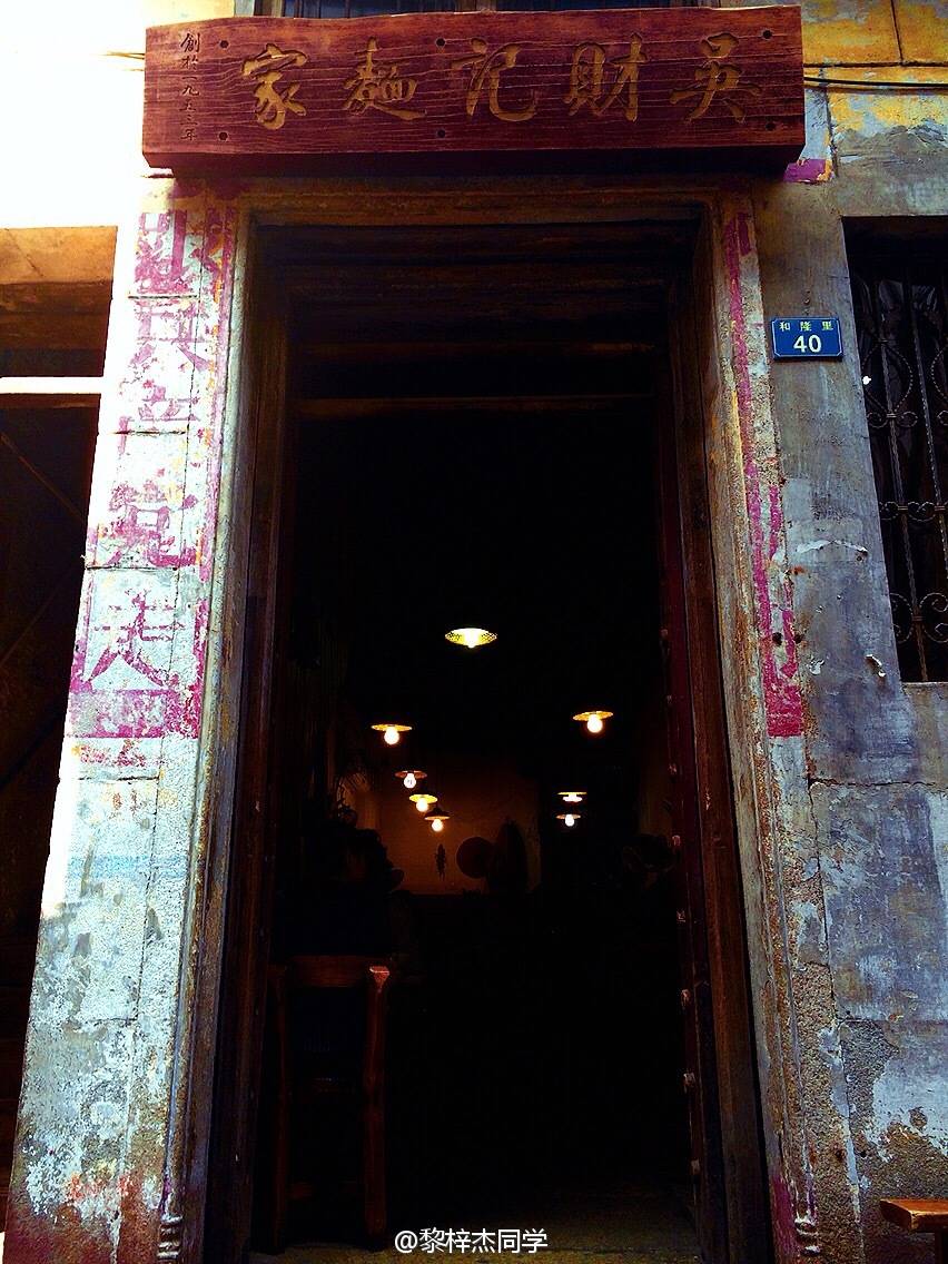 吴:这屋也是一个已经不在这边住的老街坊以比较低的价格租给我们经营的。一是因为他们家境比较好,不缺钱;二是作为街坊,他们一直以来很支持我们吴财记面家。每次来店里吃面总会有不少人对着这个标语拍照,也有人问我为什么不抹去这个旧时代的大字标语,我说这些都应该保留下来。
