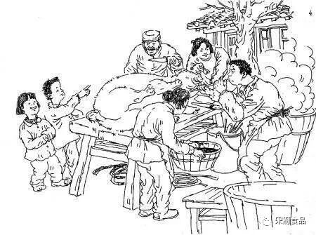 进了腊月,经过将近一年的精心喂养,两只黑色的小猪仔已经长成肥硕的大黑猪。姥姥就该和姥爷商量哪天请屠夫到家里给杀猪了。杀猪这天,于我是个恐怖的日子。姥姥早早起来,要在院子里架上一口大锅,下面放上柴火,锅里烧一锅开水。待屠夫来了,我是不敢出门的,当院子里传来猪的尖叫声,我会把头埋在被子里,把耳朵堵上,不忍听它们的哀嚎。等院子里一切都归于平静,从窗子里看两只大猪已经收拾妥当并排挂在院子里,瘦肉鲜红,肥肉厚实。姥姥每每都会用自豪的眼神欣赏她这一年的劳动成果。第二天一早,一只整猪和另一只的一半就会被小舅用独轮车推去集市上卖掉,换成一笔可观的收入用来应付家里大半年的开支。剩下的半只猪,很快会被姥姥收拾干净,归类分割,分别储藏,待过年时成为全家餐桌上的美味。