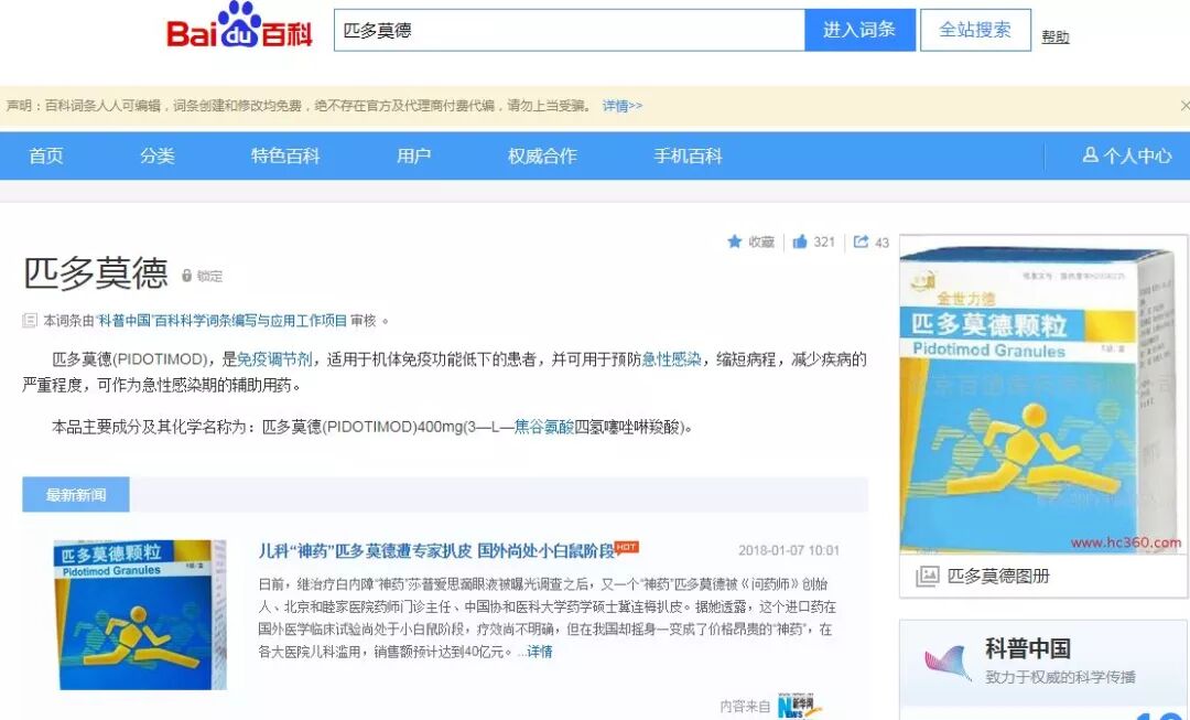 在国外权威循证医学库考科兰(Cochrane)里,都没有关于匹多莫德用于儿童安全有效的研究证实文献时,国内的研究结果却几乎清一色的有效!