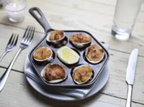 四四方方的空间,设有一个温馨舒适的前台和有着人造木板墙面,实木餐桌,还有装着瓶装咸菜架子的餐厅,这些咸菜中有的就成了开胃菜,比如甜酸茴香香菜籽。当天的牡蛎(13美元半打,一打25美元)里面可能会有来自BarnstableRocky Nook或者Sweet Petite的东海岸双壳类海鲜,味如其名。菜单上还有许多小的碟装菜式,尽情地选择与人分享吧。蚝式滑块($10)都搭配有tartar酱和热辣的泡椒。 Clams Casino(卡西诺烧蛤,13美元)是用方块培根一起烤的。别错过那些自制的菜肴,如蒸雪蟹(18美元)。餐后甜点有厚片牛奶蛋黄派,搭配有苹果酱和咸焦糖的糖衣苹果汁甜甜圈,用这个来做个完美的收尾。