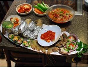 韩国城的联合海鲜烧烤Jae Bu Do,用呈上餐桌丰盛的美食来向中国东海致敬。尝尝那里物超所值的各种套餐——其实A套餐就已经足够一家人吃了,套餐里有葱花蒸鸡蛋、脆边葱油饼、热炒奶油玉米、一小碗辣椒酱泡虾以及酸橘汁腌鲷鱼。