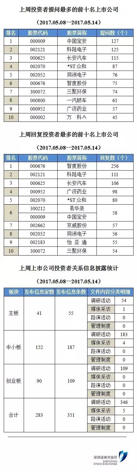 上周,我所互动易收到投资者日常问题共9827条,其中有效问题7985条,上市公司回复6855条(含本周对以往问题的回复);共有283家上市公司发布351条投资者关系活动记录文件。互动易APP目前已正式上线,进入以下网址可下载安装:苹果版http://t.cn/8sPr5SE,安卓版 http://t.cn/8sPrfIY。