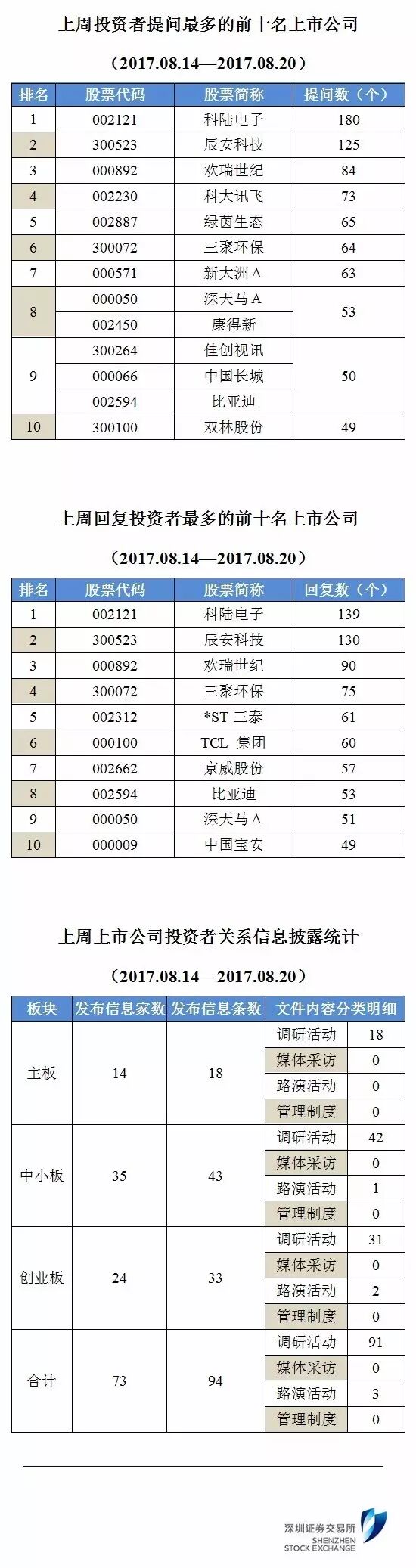 上周,我所互动易收到投资者日常问题共9441条,其中有效问题7246条,上市公司回复6801条(含本周对以往问题的回复);共有43家上市公司发布60条投资者关系活动记录文件。请查阅公众号,在“互动活动“一栏点击”互动易下载”安装。