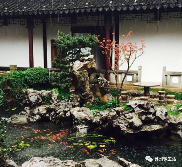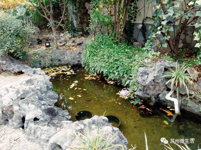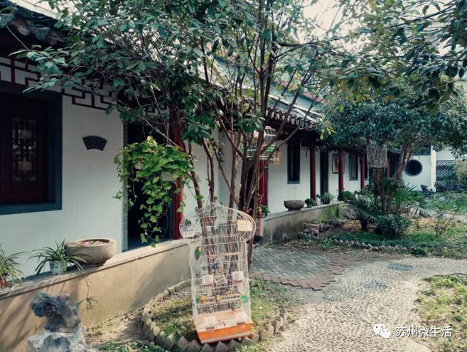 一旦你进到里面去,就会发现里面别有洞天,整个一个苏式园林,粉墙黛瓦,朱红连廊,还有一池金鱼戏水莲叶之间,阵阵婉转的鸟叫声传入耳中。