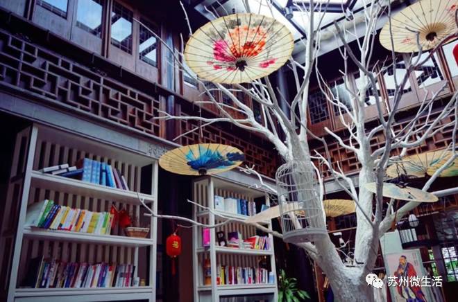 但在330年之前的清代,这里曾是冈州会馆,冈州商人在江浙沪经销芭蕉扇,所以苏州人也将这里称为“扇子会馆”,里面一个三味书屋,处处是扇子的元素,很适合坐在这里看书品茗。