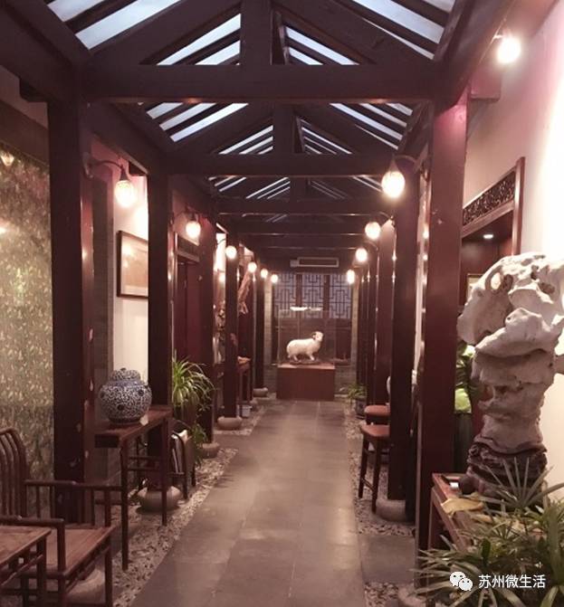 里面可以住宿,也有很精致的餐厅,有朋友小聚的卡座,也有适合家庭聚餐、商务宴请的包厢,色香味俱全,完全不输苏式老餐厅。