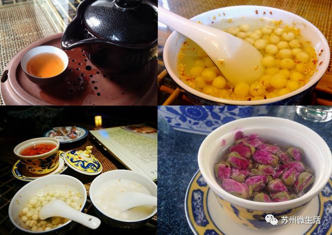 推荐:玫瑰花茶、桂花圆子、绿茶