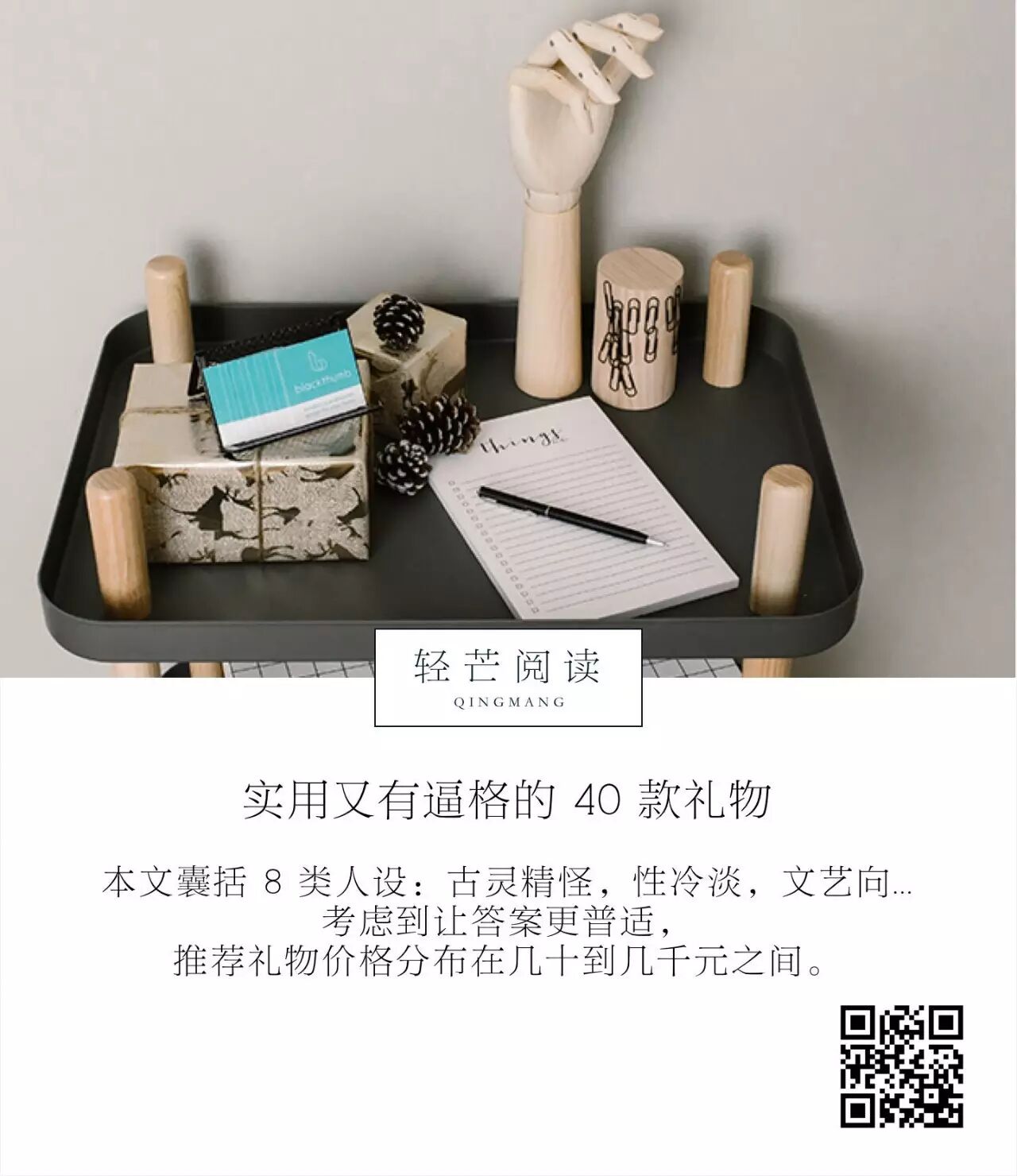 这篇文章推荐了给 8 种人的 40 种礼物,价格从几十块到几千块平均分布,丰俭由人 —— 如果你实在没有朋友,买来送给自己也是极好的。