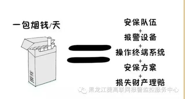 一支专业负责巡航护卫队伍+全新的报警配套设备+多种操作终端系统+多种智能配套技术法案+用户损失财产理赔=一盒烟钱/天