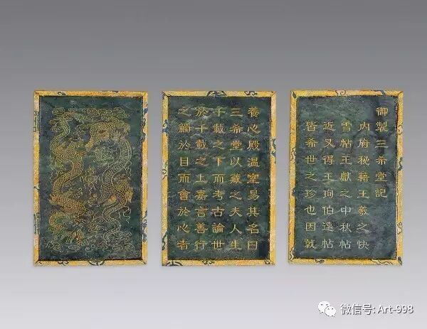 Lot 1301 碧玉描金龙纹御制三希堂记 (三件)
