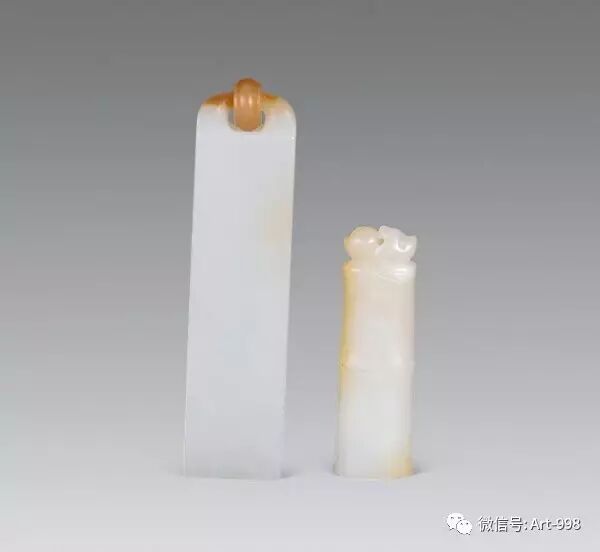 Lot 1224 白玉素印章、竹节坠 (两件)