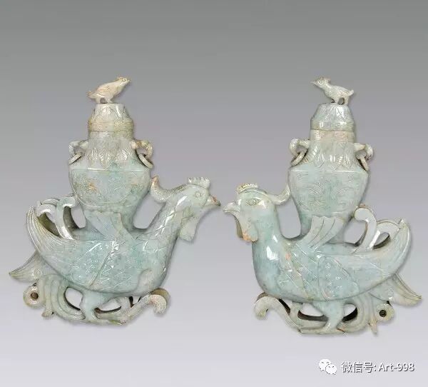 Lot 1130 民国 翡翠雕天鸡尊 (一对)