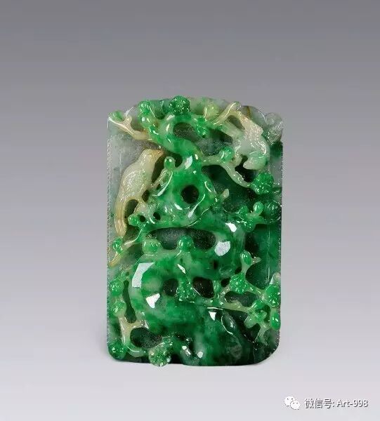 Lot 1135 清晚期 翠雕花鸟人物牌