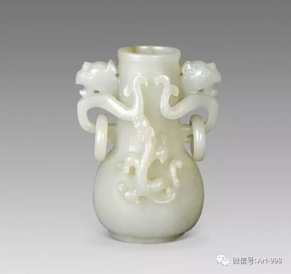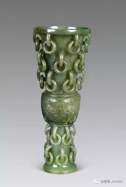 Lot 1125 清晚期 碧玉兽面纹活环花觚