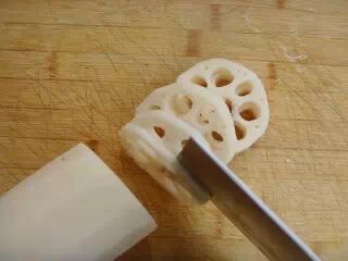 2、莲藕洗净去皮,切成夹刀片;鸡蛋清打散加入面粉,慢慢倒入啤酒搅匀至挑起面糊自然滴落。