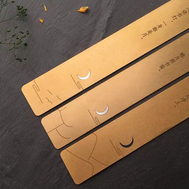 以三枚黄铜书签相赠