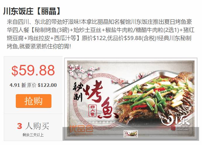 2. 来自四川、东北的带劲好滋味!本拿比丽晶知名餐馆川东饭庄推出夏日烤鱼豪华四人餐!