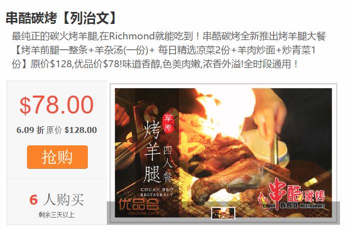 1. 最纯正的碳火烤羊腿,在Richmond就能吃到!串酷碳烤全新推出烤羊腿大餐
