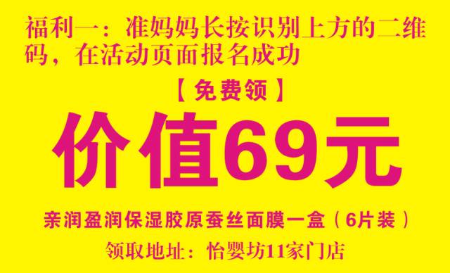 小贴士:来领取面膜的孕妈妈们需要本人携带身份证原件亲自来门店领取,不能让别人代领哦。孕期3个月以下的孕妈妈请您来时提供医院B超检查单等证明文件,谢谢亲们的配合!