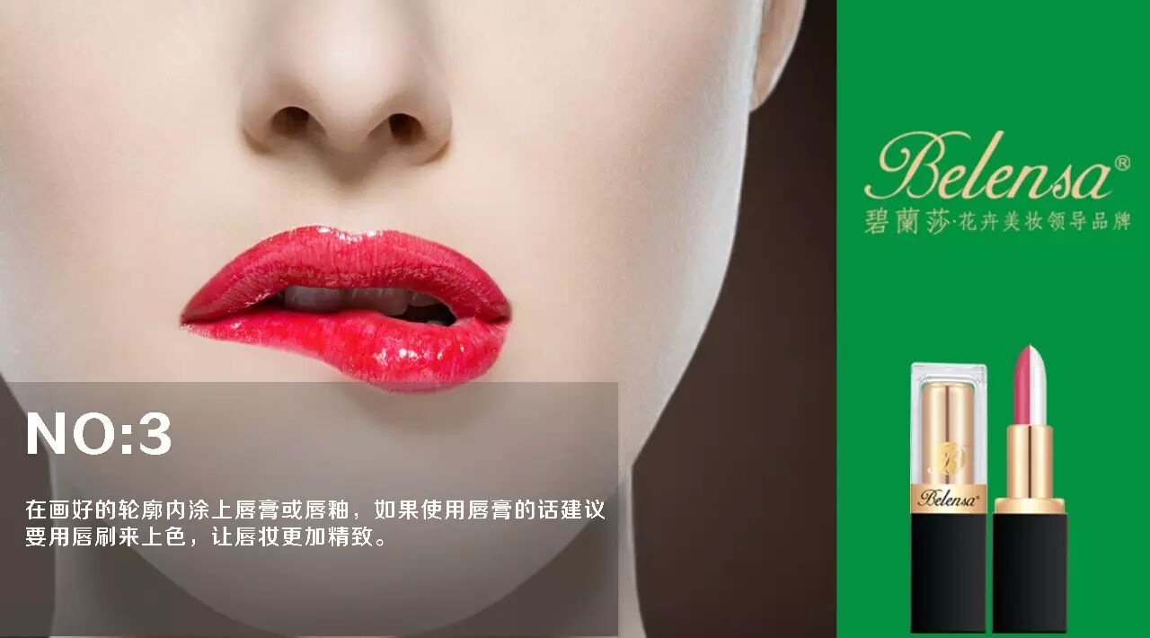 3、在画好的轮廓内涂上唇膏或唇釉,如果使用唇膏的话建议要用唇刷来上色,让唇妆更加精致。