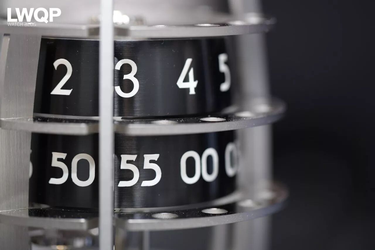透过大直径不锈钢表盘上的数字时标,可清晰判读小时与分钟,轻易辨识时间,但另一方面,又很难不被表面上华丽的垂直架构开放式机芯吸引目光。
