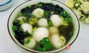 3.加入煮好的鲜肉汤圆,盛碗后,撒点海苔丝装饰,既好看又好吃。
