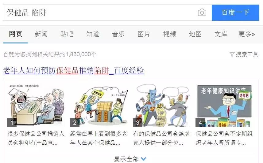 百度 “保健品 陷阱”,出现近两百万个相关条目: